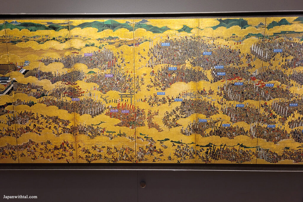 לטירה יש שמונה קומות אשר בכל אחת מהן ישנם מוצגים שונים המספרים אודות חייו של טויוטומי הידיושי, הקרבות שהוא ניהל ואודות הטירה עצמה. בקומה השמינית יש תצפית היקפית נהדרת על העיר וכדאי שלא לפספס אותה (אפילו אם היא עמוסה).