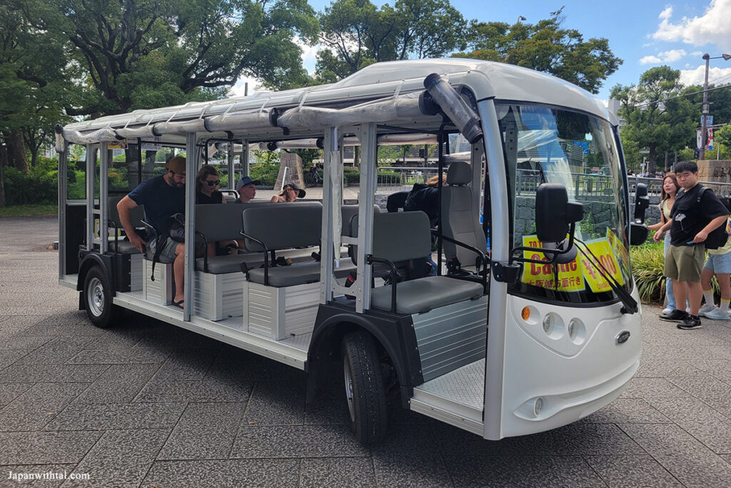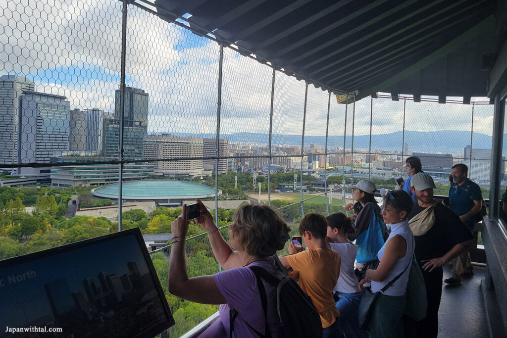 תלוי בכיוון ממנו תגיעו לטירה, יש צורך ללכת בפארק בין 10 ל-15 דקות עד אליה. אם יש לכם קשיי הליכה או אם עייפתם מהליכה, תוכלו להקל על עצמכם ולנסוע במיניבוס החשמלי הפתוח שלוקח מטיילים קרוב יותר לטירה – עד שער Sakuramon. הוא יוצא מחניון האוטובוסים Jonan (דרומית לטירה) ועוצר גם בתחנת Bambacho (דרום-מערבית לטירה) לא רחוק מתחנת הרכבת Tanimachi Station.