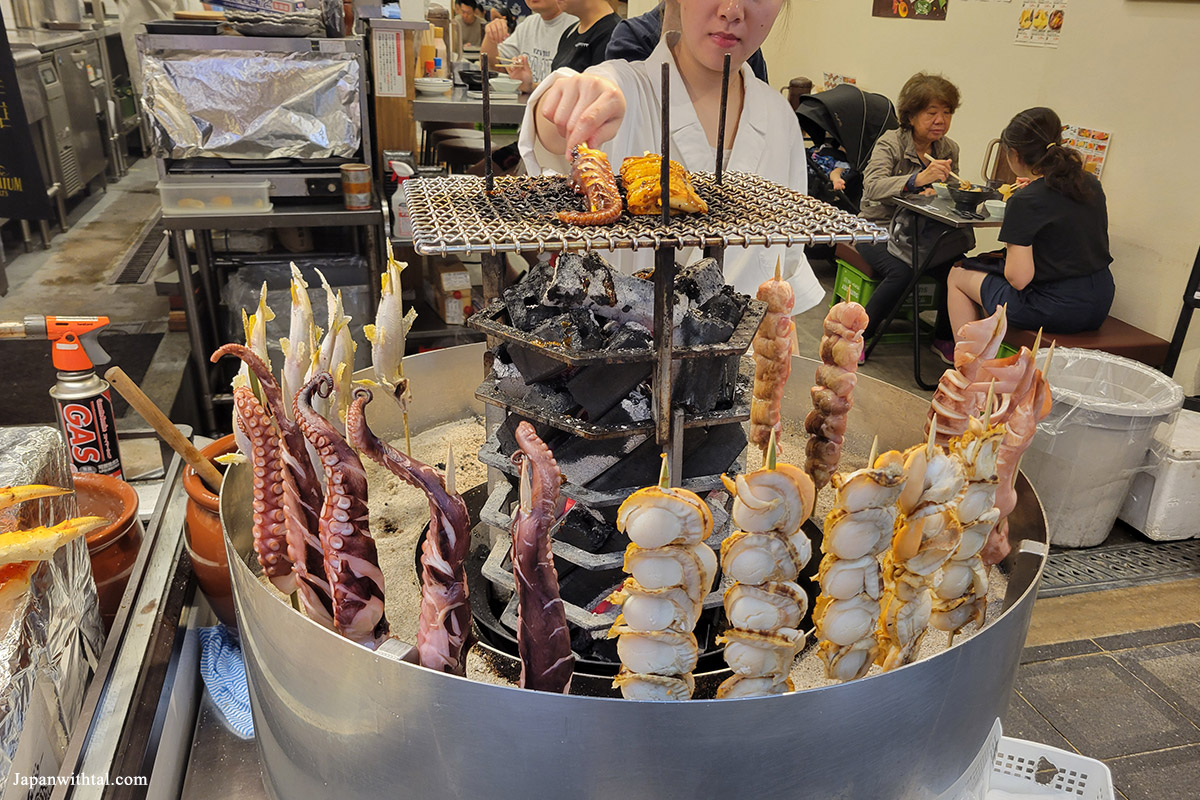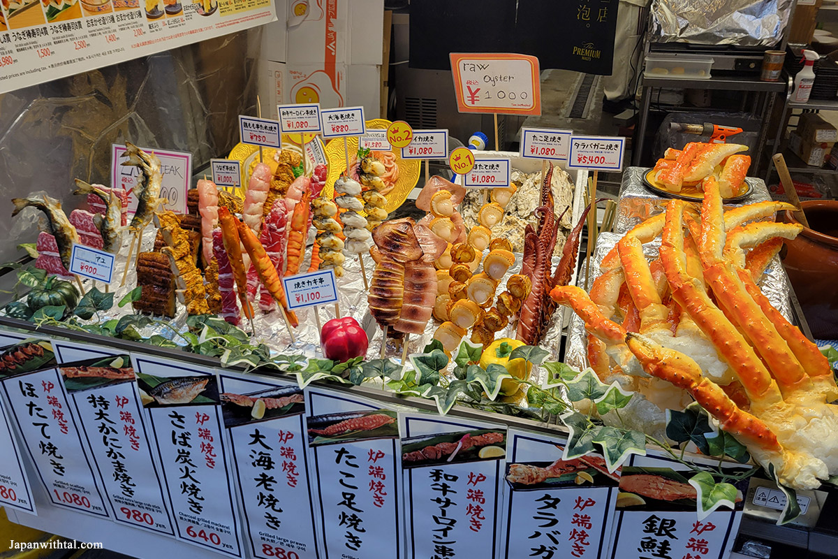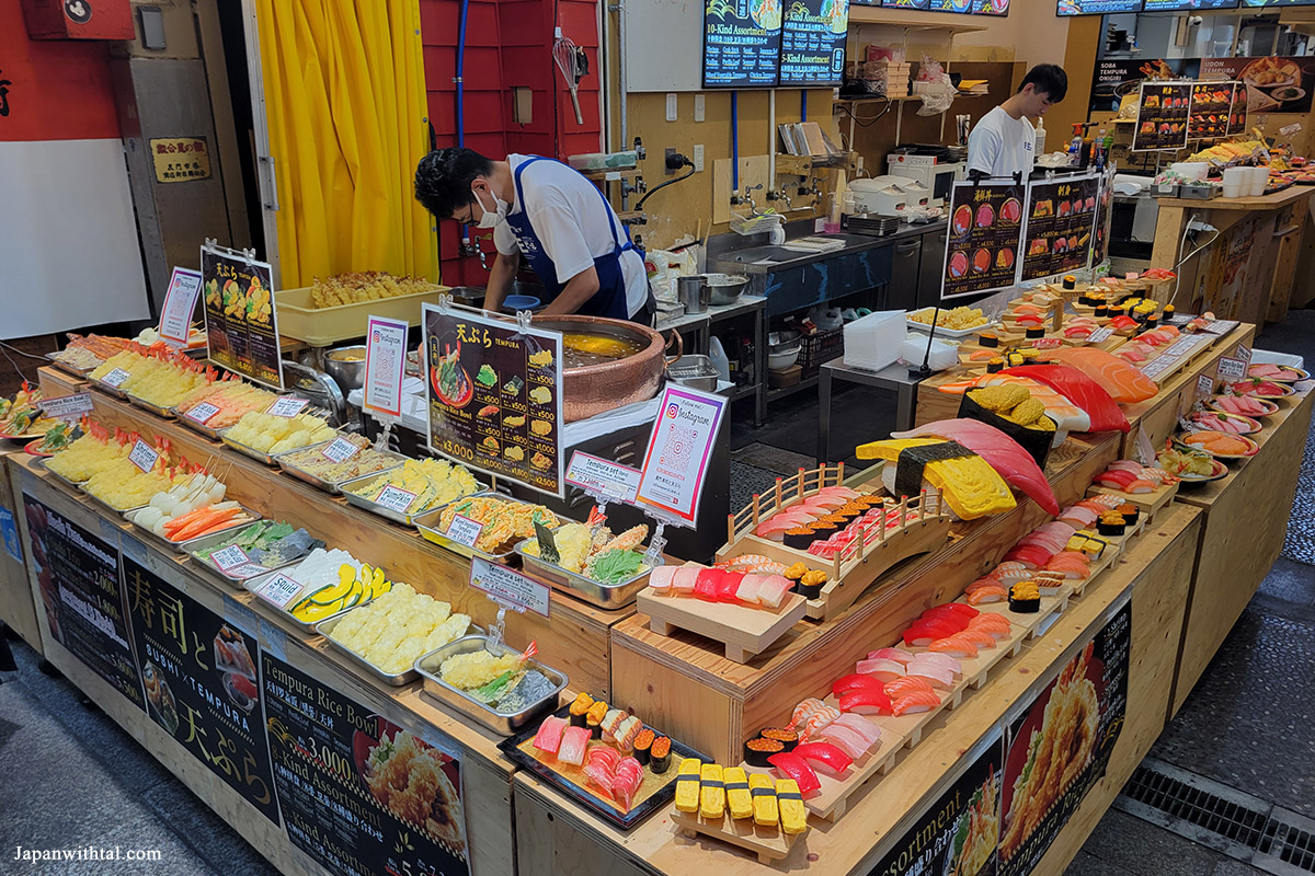 שוק אוכל ומזכרות תוסס וצבעוני עם אין-ספור מסעדות ודוכני אוכל. קל לזהות אותו בזכות קישוטים ענקיים שתלויים מהתקרה שלו בדמות דג, תמנון, סרטן ועוד. בעבר המקומיים היו מגיעים אליו לקניות אולם כיום הוא הפך לאטרקציה תיירותית ולמרבה הצער הרבה עסקים שם עברו לידיים זרות כך שמחירי האוכל יקרים בצורה חריגה בהשוואה למקובל ביפן (למעט סופרמרקט נקגאווה במרכז השוק ומספר מסעדות קטן בעיקר ברחובות צדדיים).