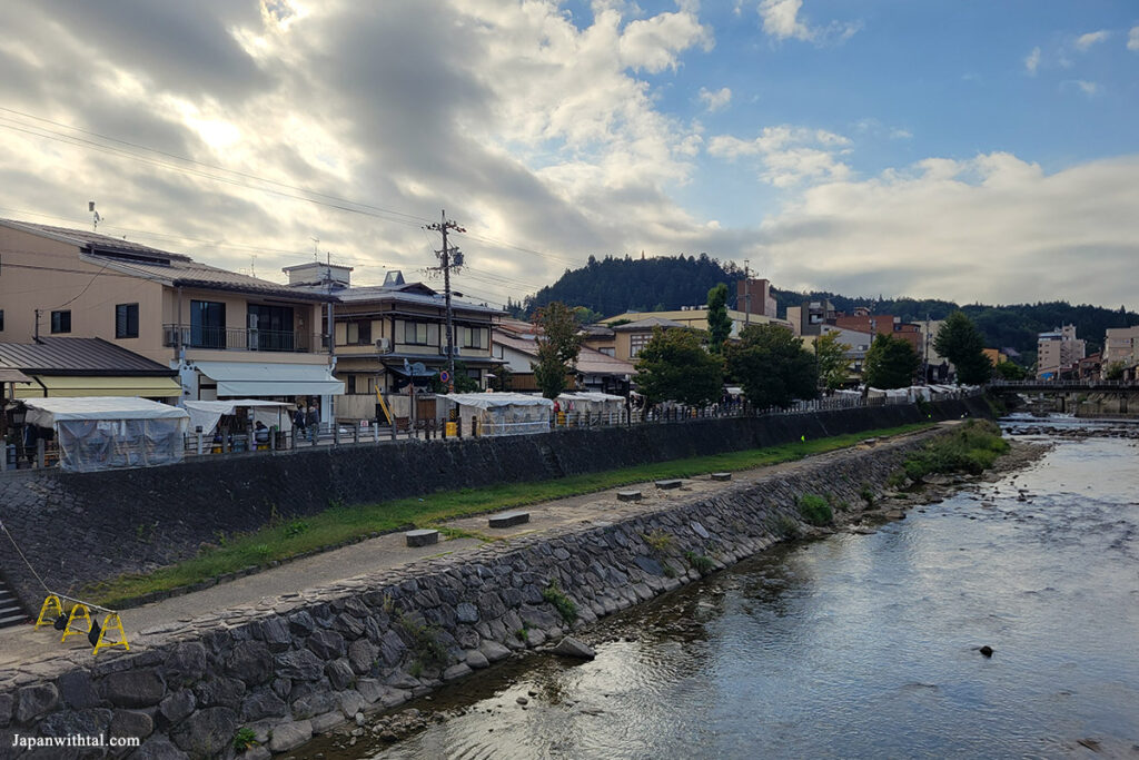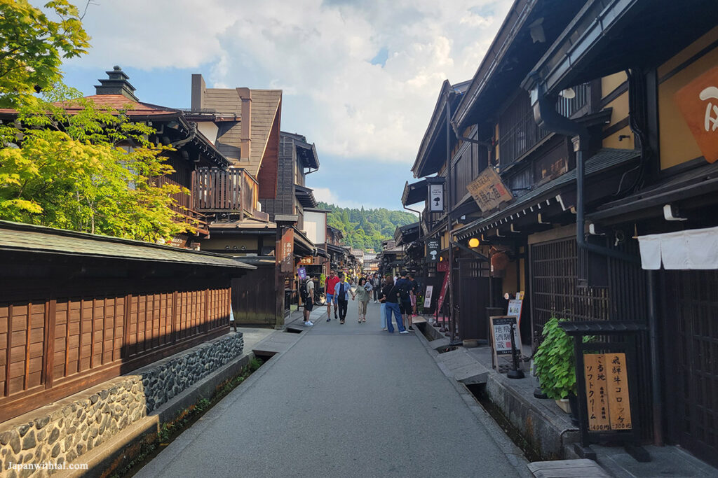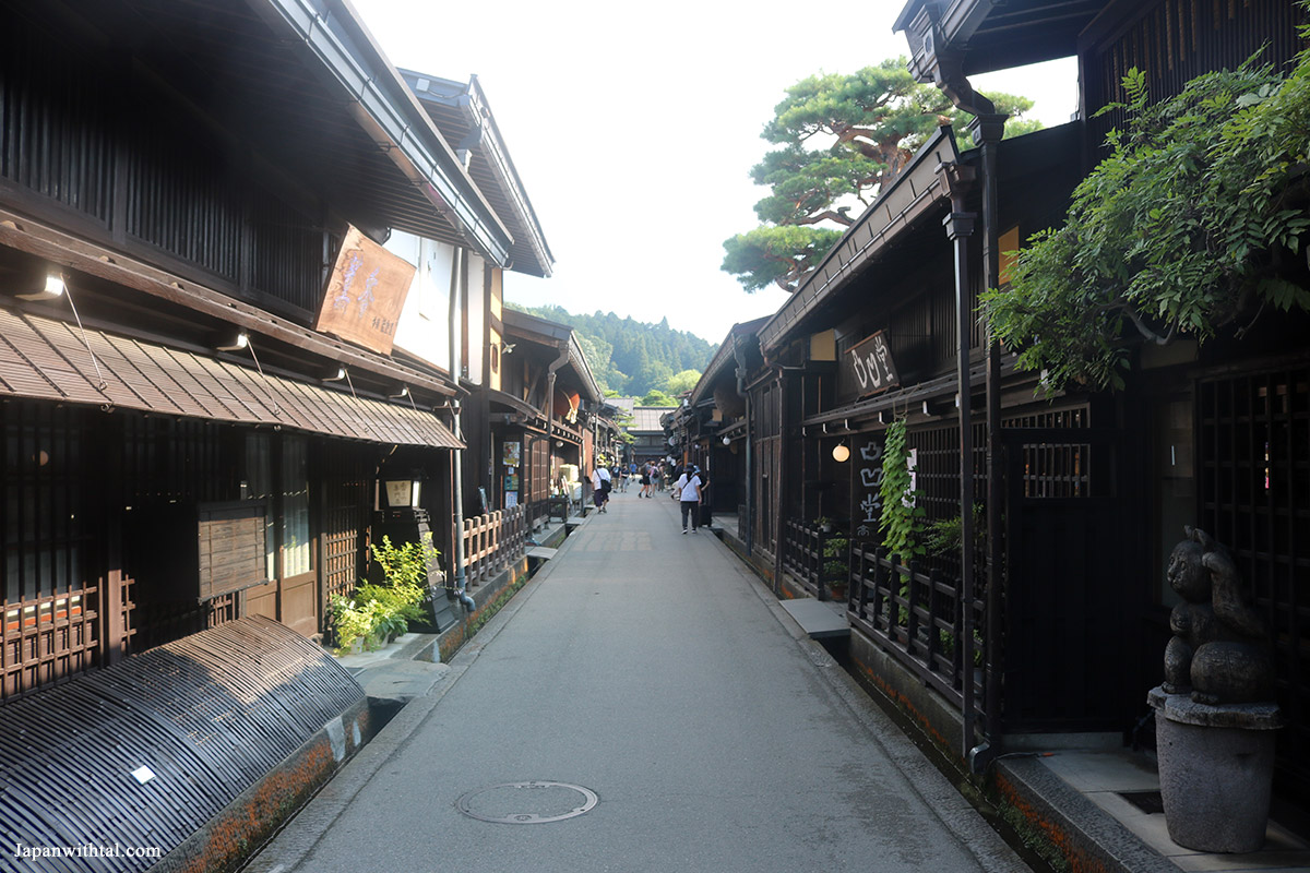 הרובע ההיסטורי של טקייאמה שמשמר את אווירת תקופת אדו מורכב ממספר רחובות ארוכים עם בתי עץ בעלי חזית צרה ותעלות מים. ברחובות הללו תוכלו למצוא המון חנויות, מסעדות, אוכל רחוב, מבשלות סאקה ועוד. הרבה מהחנויות באיזור משמשות גם כבתי מגורים והם בבעלות של משפחות מקומיות מזה מספר דורות.