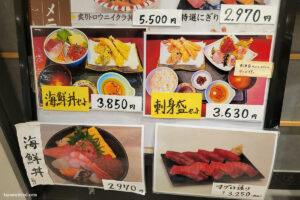 יש ריכוז של כ-20 מסעדות במתחם הזה, רובן כמובן מתמקדות במאכלי ים למיניהם אבל יש גם מסעדה סינית, מסעדת טונקאטסו (שניצל חזיר), מסעדת קארי וגם מסעדה אחת שמתמחה בעוף.