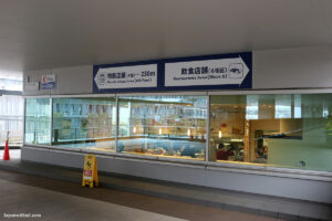 כדי להגיע אליו חצו את הכביש באמצעות הגשר להולכי רגל, פנו שמאל והמשיכו הלאה אחרי הכניסה למתחם Senkyaku Banrai (זה שנבנה בסגנון מסורתי ישן). בהמשך תראו לפניכם את החלון של בית הקפה Senriken ומצד ימין שלו תהיה כניסה צדדית למתחם המסעדות, אם תמשיכו ללכת בשביל מצידו השמאלי של בית קפה תראו בהמשך כניסה בצד ימין לאותו המתחם (ואם תמשיכו ישר תגיעו למתחם החנויות של השוק, עליו כתבתי בהמשך העמוד).